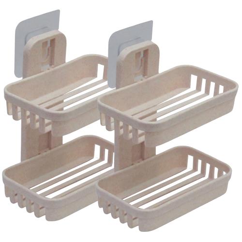 月陽超值2入加厚兩層橫條型無痕免打孔瀝水肥皂架置物架(1392X2)