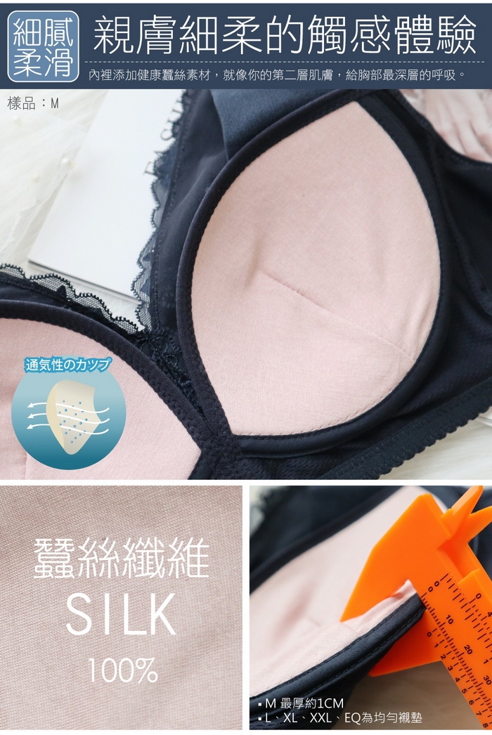 創新添加大自然100%蠶絲面料,進一步增加文胸的透氣性,真正展現會呼吸的調整型內衣