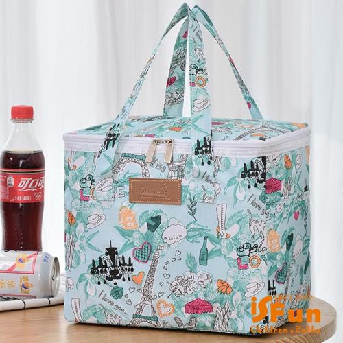 iSFun 繽紛印花 大容量方型手提保冷保溫便當包 2色可選