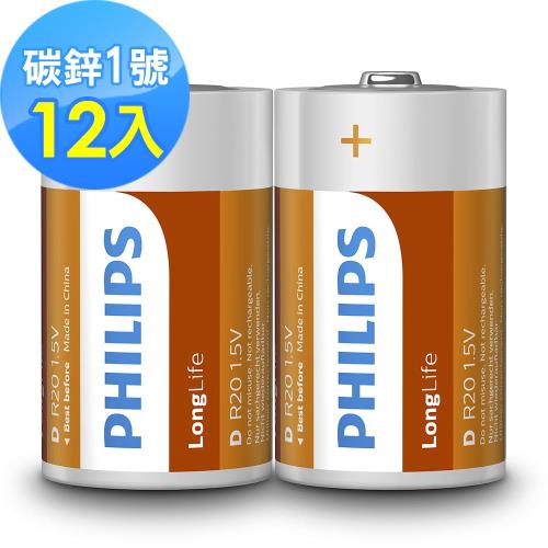 【Philips 飛利浦】1號碳鋅電池(12顆)