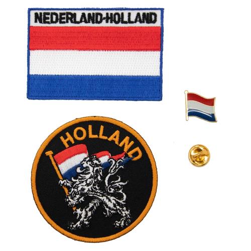 DIY衣飾立體繡貼 三件組荷蘭標誌+荷蘭國旗刺繡+別針 補丁臂章燙 刺繡燙布貼