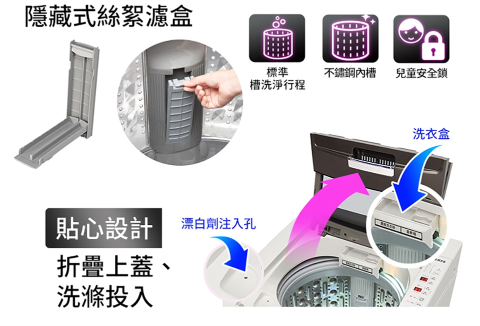 SAMPO 聲寶 16公斤 MIT 好取式定頻直立式洗衣機 ES-L16V(K1)