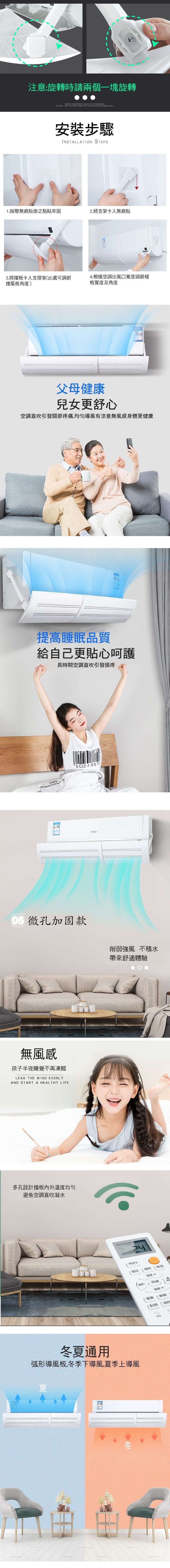 本款空調微孔防直吹導風調節板,可以上下左右多角度調節,適用各種冷氣機型號,安裝簡單,無痕貼一貼就好,引導空調氣流不會直接對著人體吹,減少不良的影響層次,微孔防冷風直吹,且不凝水,保護家人的健康!