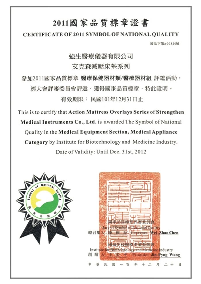 ◆ 通過2011國家品質標章認證 符合衛生署醫療器材查驗登記
