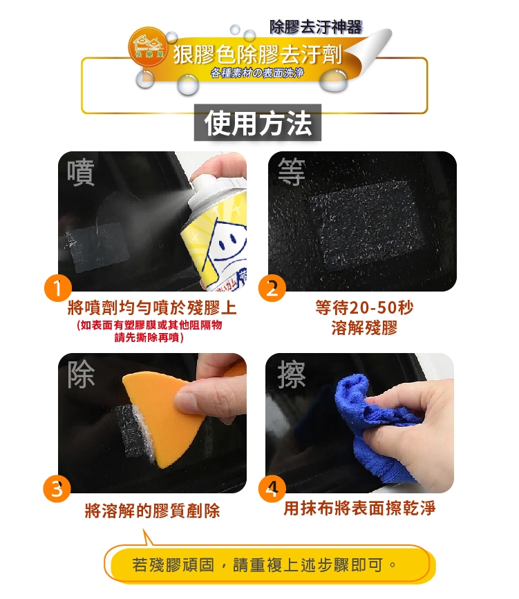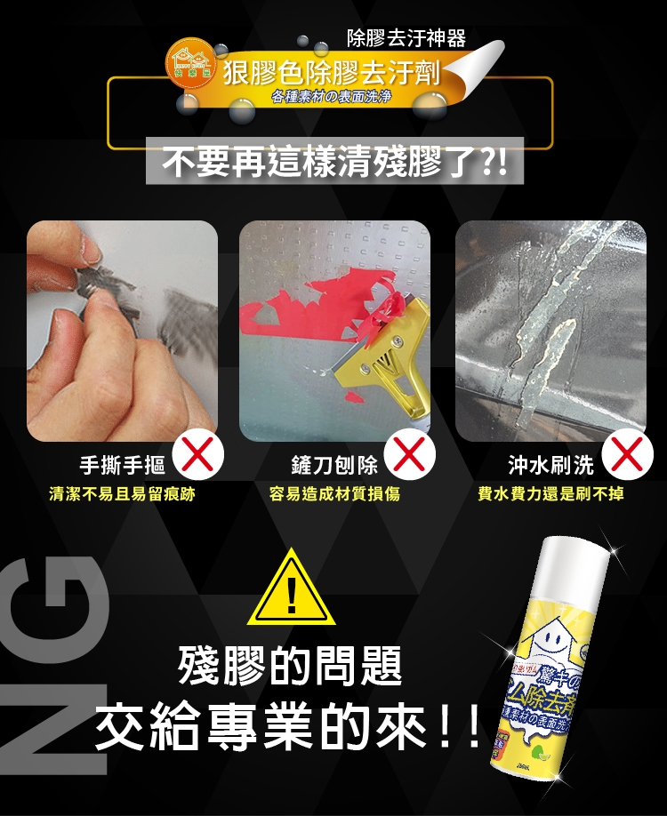 2.廣告貼紙、標籤、雙面膠、泡綿膠、OPP膠帶殘膠;強力膠、矽力康殘膠、口香糖、柏油瀝青、陳年膠帶黏膜清除。