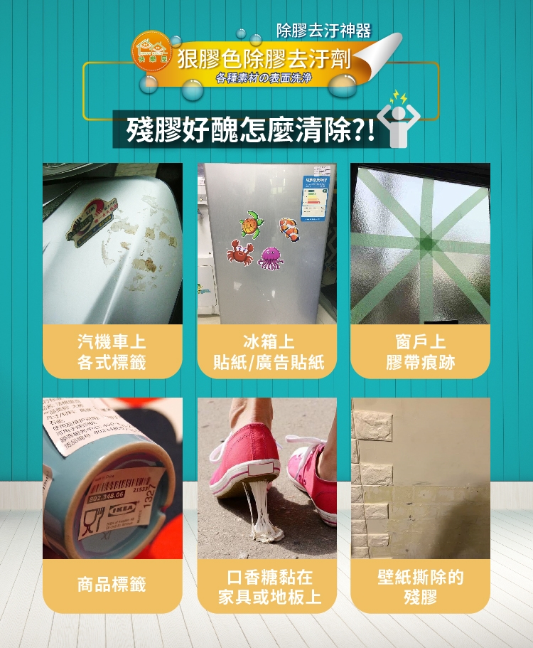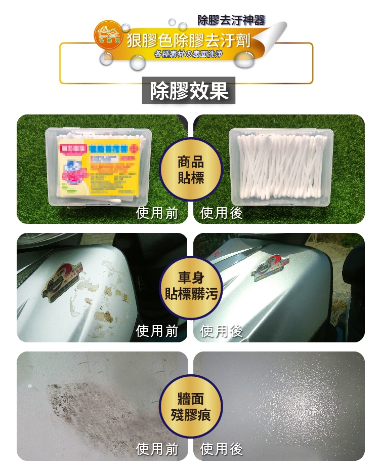 適用各式貼標貼紙撕除後的殘膠,包括陳年的殘膠都能有效清除