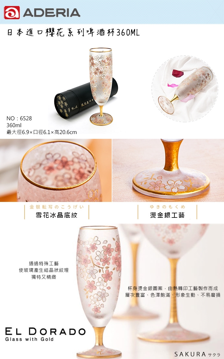 產品特性:櫻花系列啤酒杯,鑲嵌了象徵日本的「櫻花」,讓您不用出國也能感受到濃厚的日本氣息。