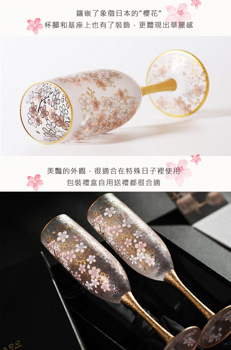 啤酒杯通過玻璃特殊工藝,使玻璃產生結晶狀紋理,獨特又精緻。杯身採用燙金設計,櫻花圖騰由熱轉印工廠製作而成,層次豐富、色澤飽滿,