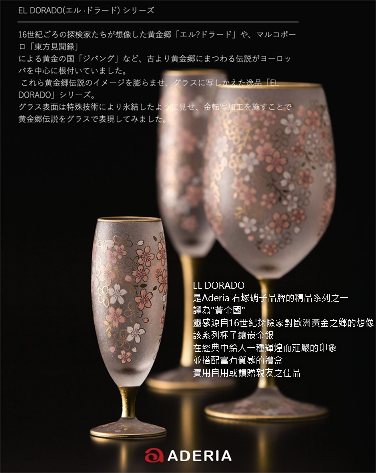 EL DORADO系列為ADERIA石塚硝子的精品系列,譯為「黃金國」,靈感源自16世紀探險家對歐洲黃金之鄉的想像。