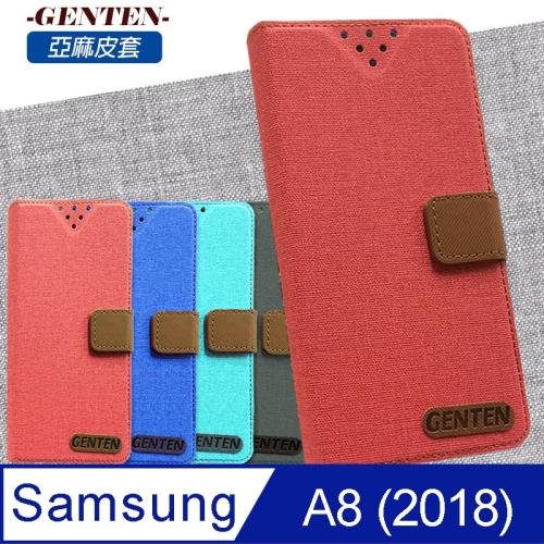 亞麻系列 Samsung Galaxy A8 (2018) 插卡立架磁力手機皮套