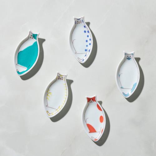 有種創意 - 日本晴九谷燒 - 貓豆皿筷架(5入組)