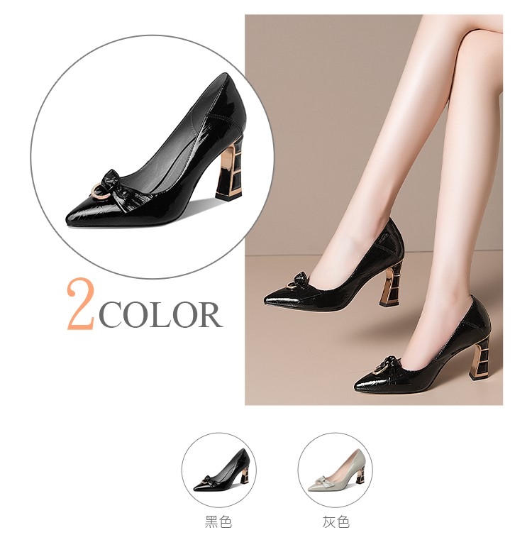 【Kissxxx】真皮復古鱷魚皮紋尖頭蝴蝶結優雅高跟鞋 黑