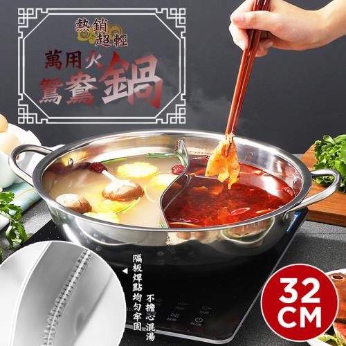 【KNF 康尼菲】熱銷加厚304不鏽鋼萬用鴛鴦火鍋 32cm 適用IH爐/電磁爐/瓦斯爐/電陶爐 不挑爐具