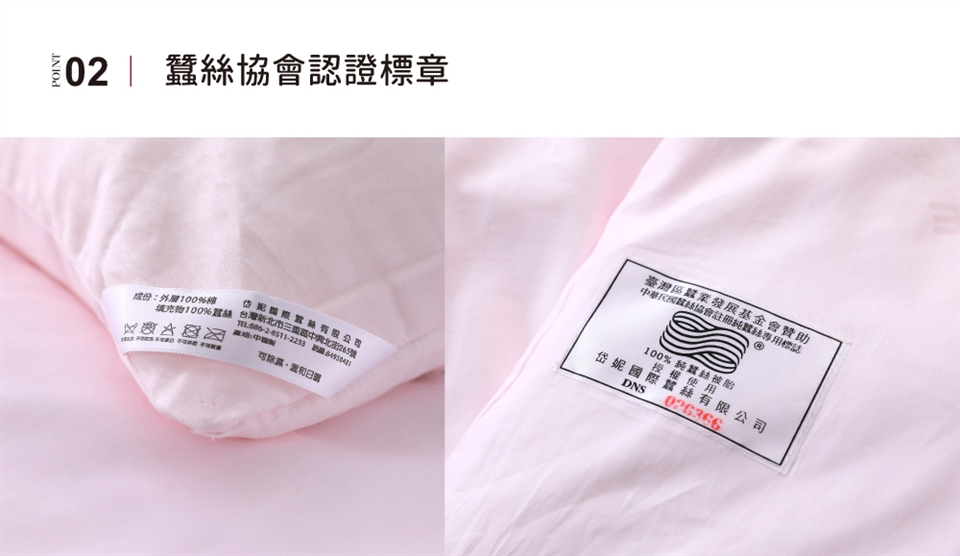 ► 絲被、絲枕內胎請勿水洗、乾洗,以免影響長纖維蠶絲的蓬鬆、柔軟與舒適度。如需局部清洗,用毛巾沾濕擦拭,再用乾毛巾按壓吸水,反覆清理後用吹風機為熱風吹乾即可。