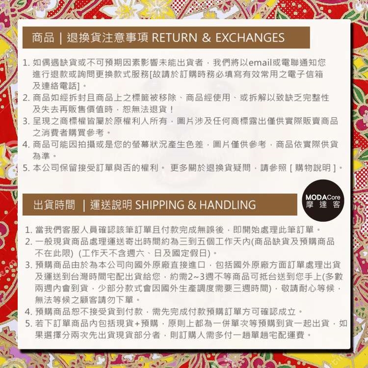 ※ 更多關於退換貨疑問,請參照 [ 購物說明 ]。