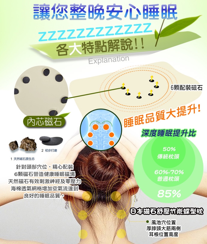 內置6顆磁石,刺激活絡神經,放鬆一整天緊繃的疲勞,大大提升睡眠品質!