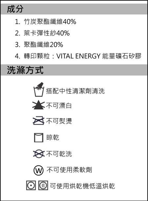4.勿漂白5.勿熨燙6.勿乾洗7.勿使用柔軟劑