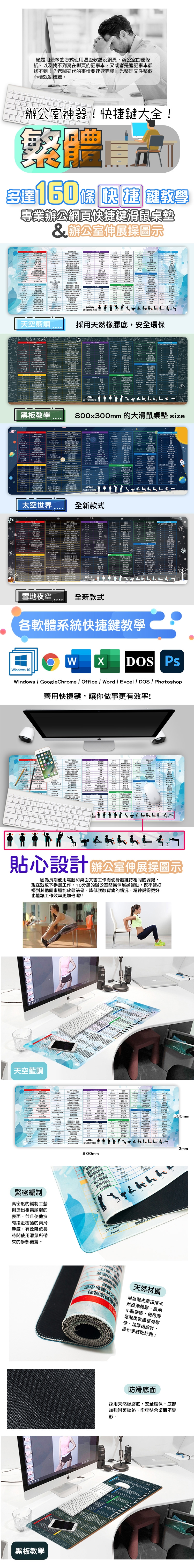 繁中軟體快捷鍵滑鼠桌墊,既是滑鼠墊,又是輔助你作業效率提升的物品,
