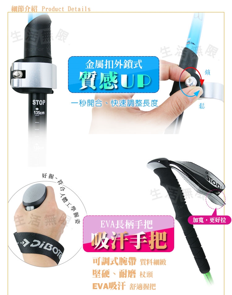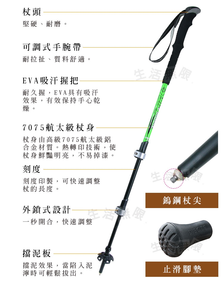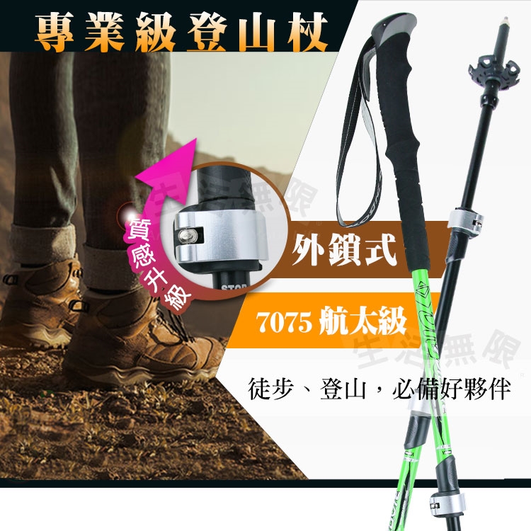 品名:【生活無限】登山杖高質感/直柄三節 7075航太級/外鎖式
