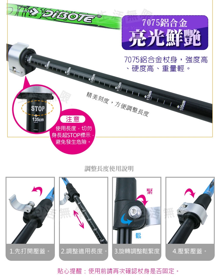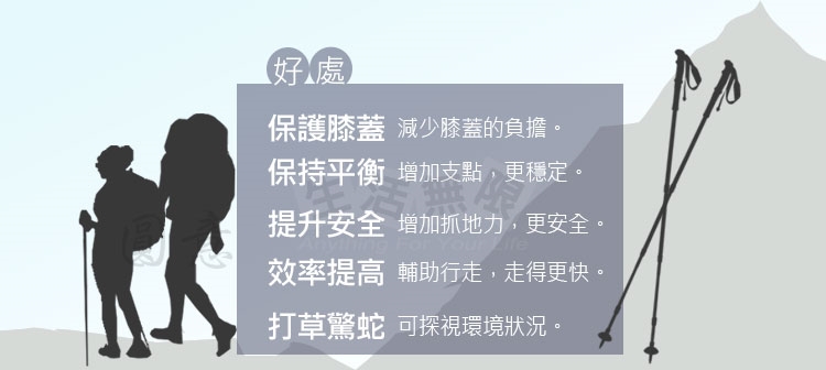 1.此杖除作為登山、健走、徒步旅行用途之外,請勿做為其他用途。