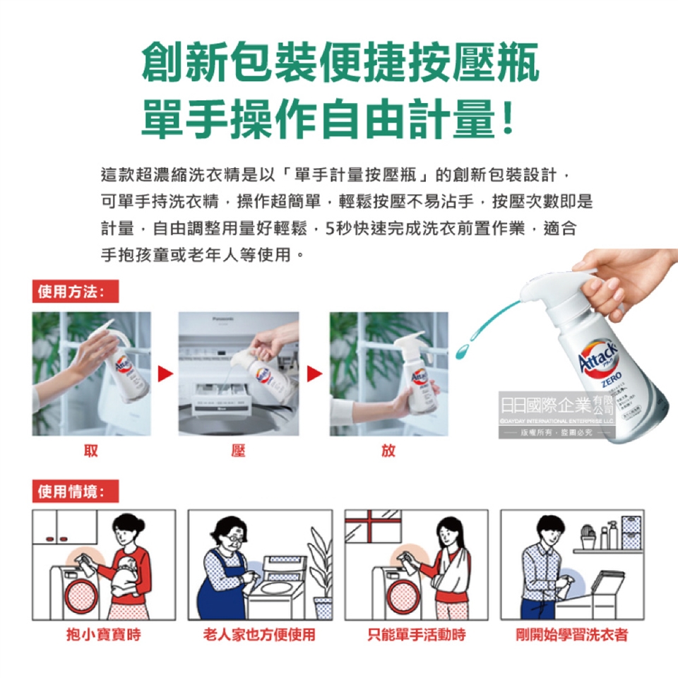 ●品名:Attack ZERO單手按壓噴槍型洗衣精