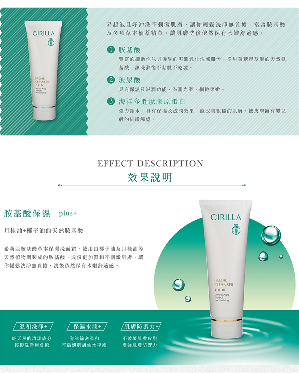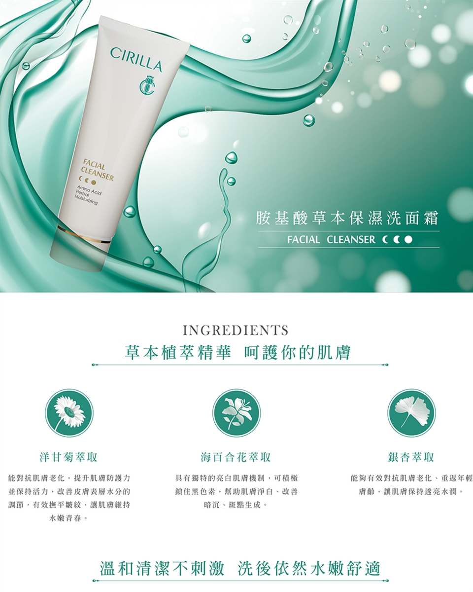 搓揉起泡後以指腹於臉部按摩劃圈,最後以清水洗淨