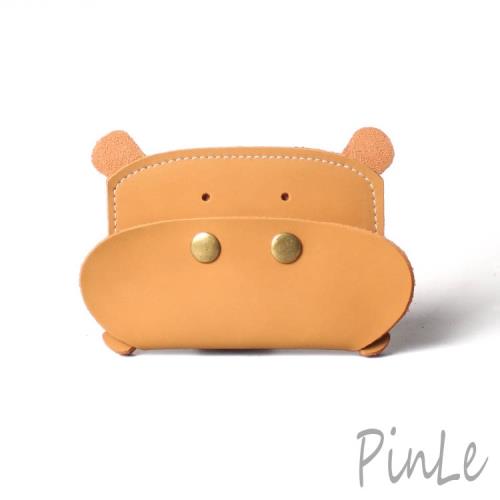 PinLe 真皮手作日系質感牛皮零錢卡夾包 鑰匙包 耳機包 (河馬)