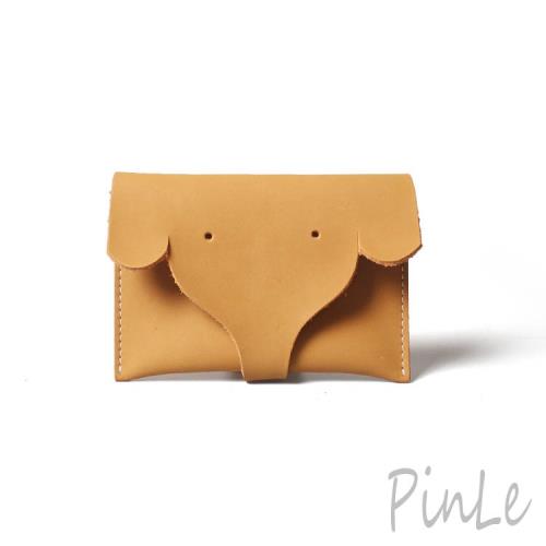PinLe 真皮手作日系質感牛皮零錢卡夾包 鑰匙包 耳機包 (大象)