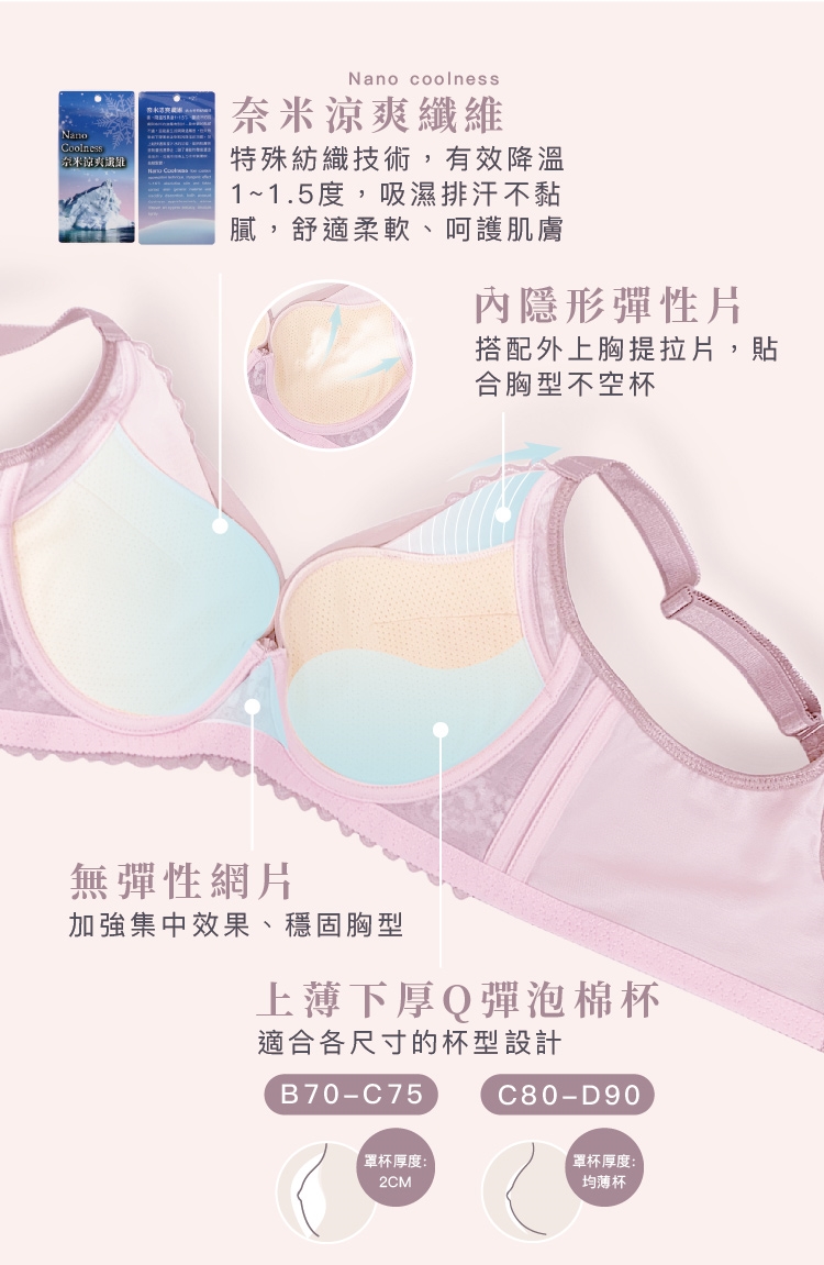 Clany可蘭霓 台灣製軟鋼圈涼感機能高包覆內衣 B-D
