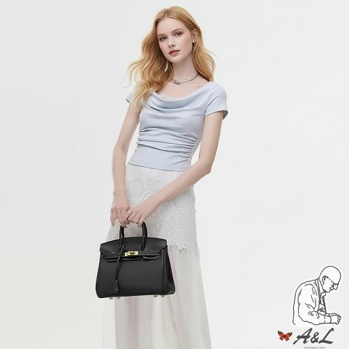 【AL老工匠】限量Betsy柏金荔枝紋真皮包25cm-優雅黑