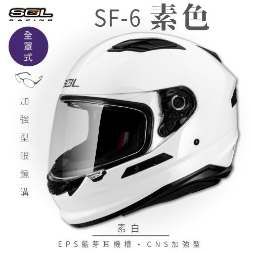 SOL SF-6 素色 素白 (全罩安全帽/機車/內襯/鏡片/全罩式/藍芽耳機槽/內墨鏡片/GOGORO)