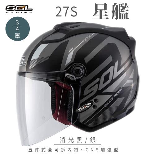 SOL 27S 星艦 消光黑/銀 3/4罩(開放式安全帽/機車/內襯/抗UV鏡片/半罩/GOGORO)