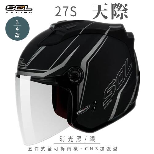 SOL 27S 天際 消光黑/銀 3/4罩 (開放式安全帽/機車/內襯/抗UV鏡片/半罩/GOGORO)