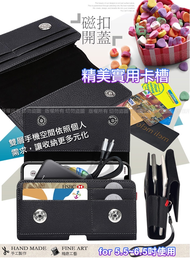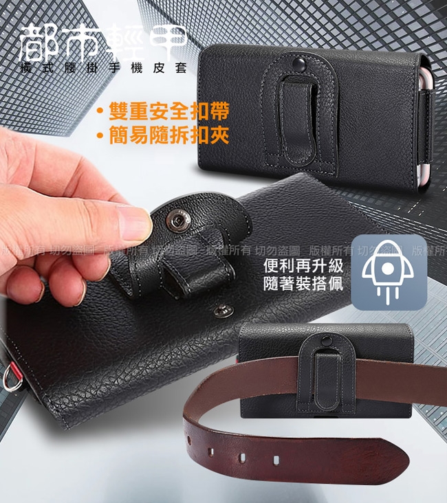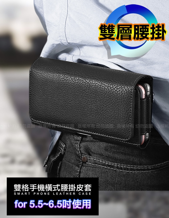 精美實用雙卡槽雙格手機橫式腰掛皮套