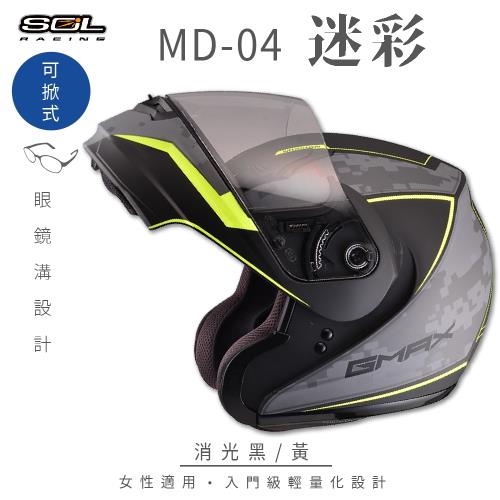 SOL MD-04 迷彩 消光黑/黃 可樂帽 SM-3(可掀式安全帽/機車/內襯/鏡片/竹炭內襯/輕量化/GOGORO)