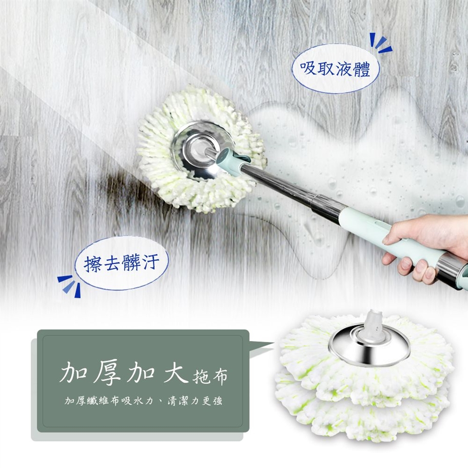 3.拖布採用超密纖維拖布~加密加厚~吸水力超強! 且拖布更換方便~