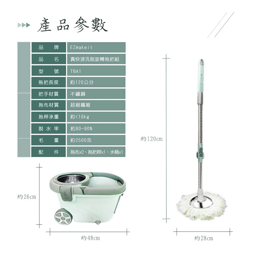 EZmakeit-TBA1 真快速洗脫旋轉拖把組