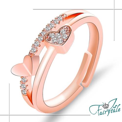 【伊飾童話】擁抱愛心*韓風水鑽彈性開口戒指/玫瑰金