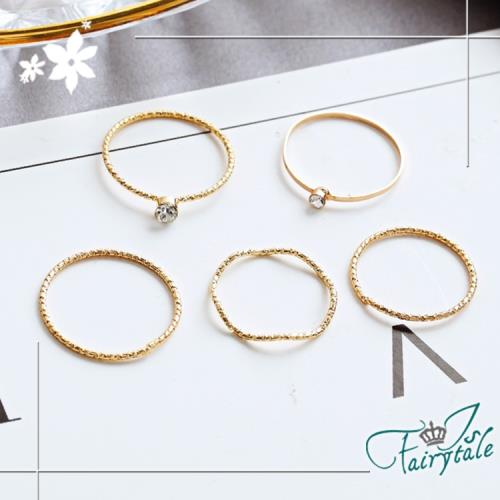 【伊飾童話】麻花波浪*韓風水鑽簡約戒指五件組/金