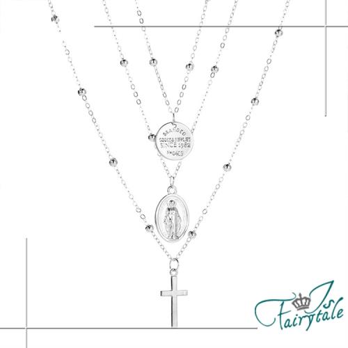 【伊飾童話】女神十字架*宮廷圓牌華麗三層項鍊