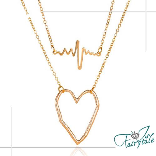 【伊飾童話】愛情心電圖*韓風雙層鏤空項鍊/金