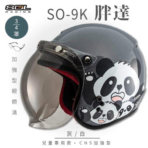 SOL SO-9K 胖達 灰/白 高規格兒童安全帽 騎士帽 3/4罩(機車/可拆洗內襯/附泡泡鏡片/GOGORO)