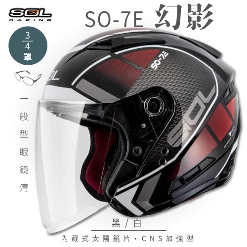 SOL SO-7E 幻影 黑/白 3/4罩(開放式安全帽/機車/內襯/半罩/加長型鏡片/內藏墨鏡/GOGORO)