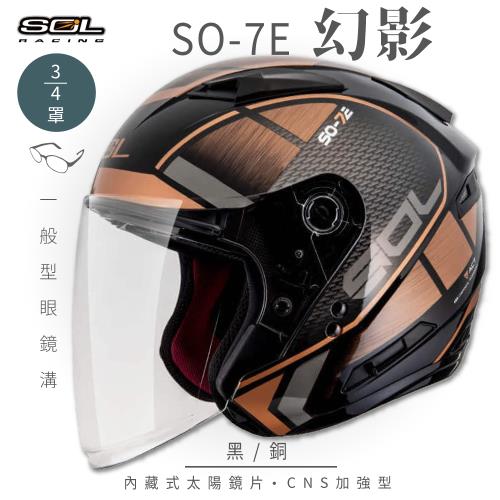 SOL SO-7E 幻影 黑/銅 3/4罩(開放式安全帽/機車/內襯/半罩/加長型鏡片/內藏墨鏡/GOGORO)