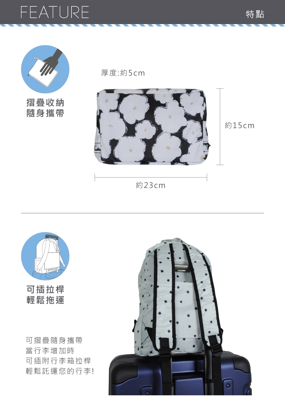 ※ 雖為防潑水材質,由於雨水或汗水的多重使用下,有可能會染色到別的物品上。