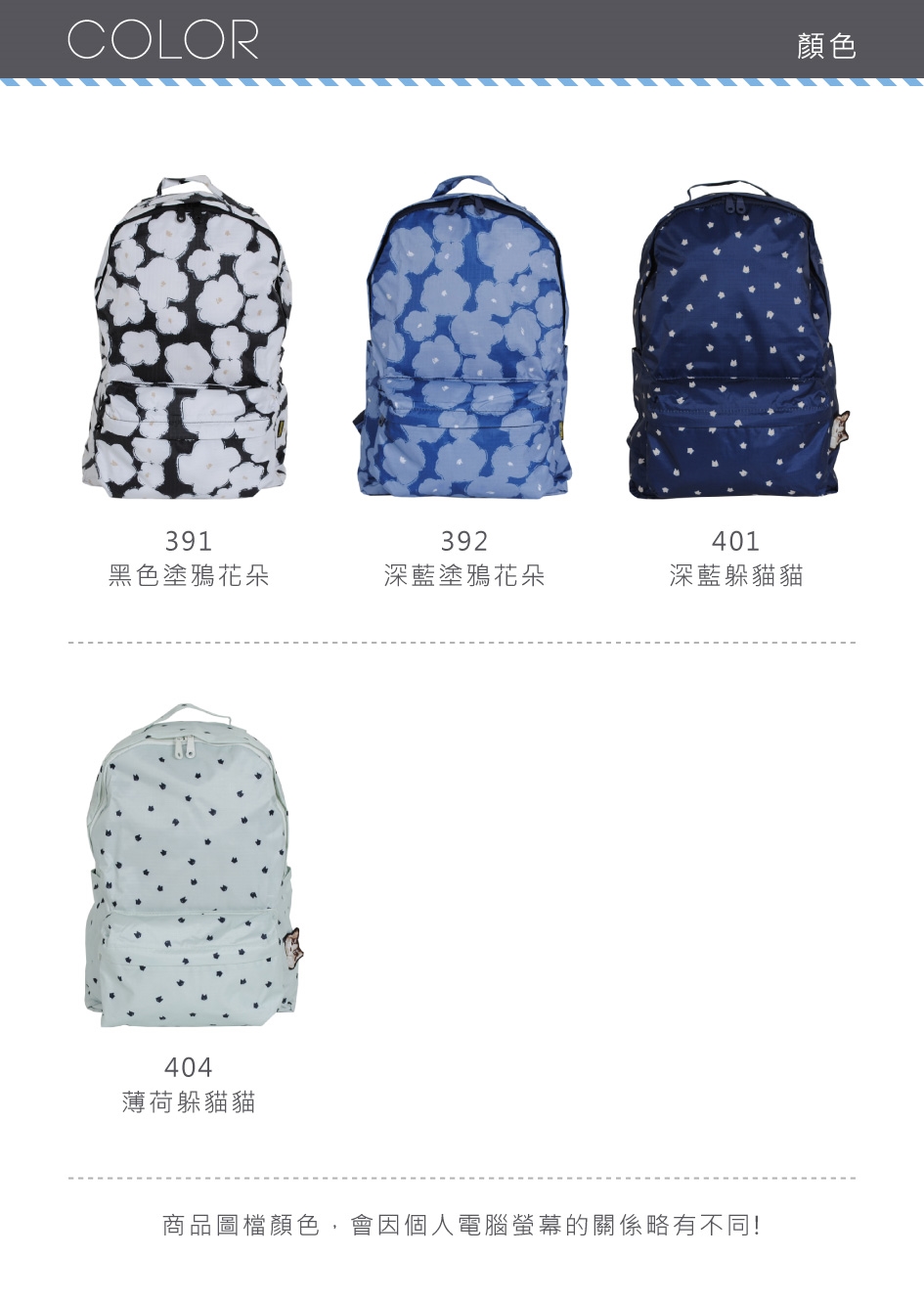 ※ 雖為防潑水材質,由於雨水或汗水的多重使用下,有可能會染色到別的物品上。