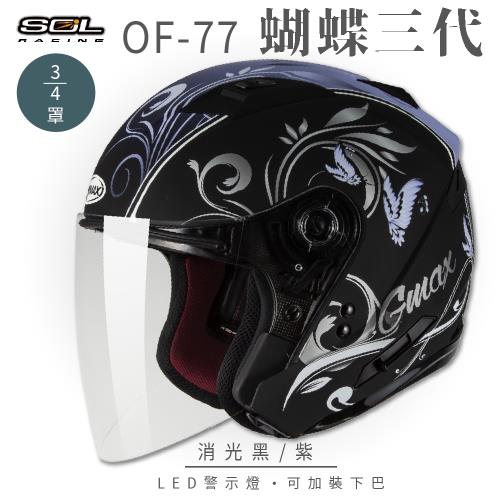 SOL OF-77 蝴蝶三代 消光黑/紫 3/4罩 SO-7(開放式安全帽/機車/內襯/鏡片/半罩/內藏墨鏡/GOGORO)