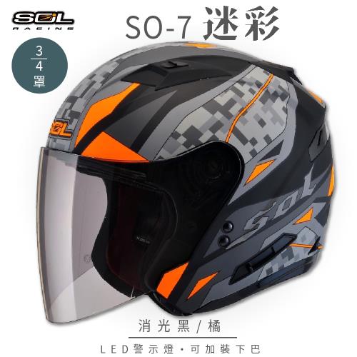 SOL SO-7 迷彩 消光黑/橘 3/4罩 OF-77(開放式安全帽/機車/內襯/半罩/LED燈/內藏墨鏡/GOGORO)