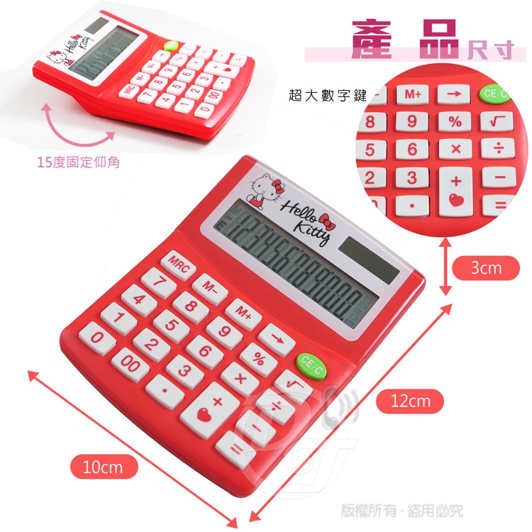 ◎品名:HELLO KITTY 夢幻紅12位元計算機 KT-300