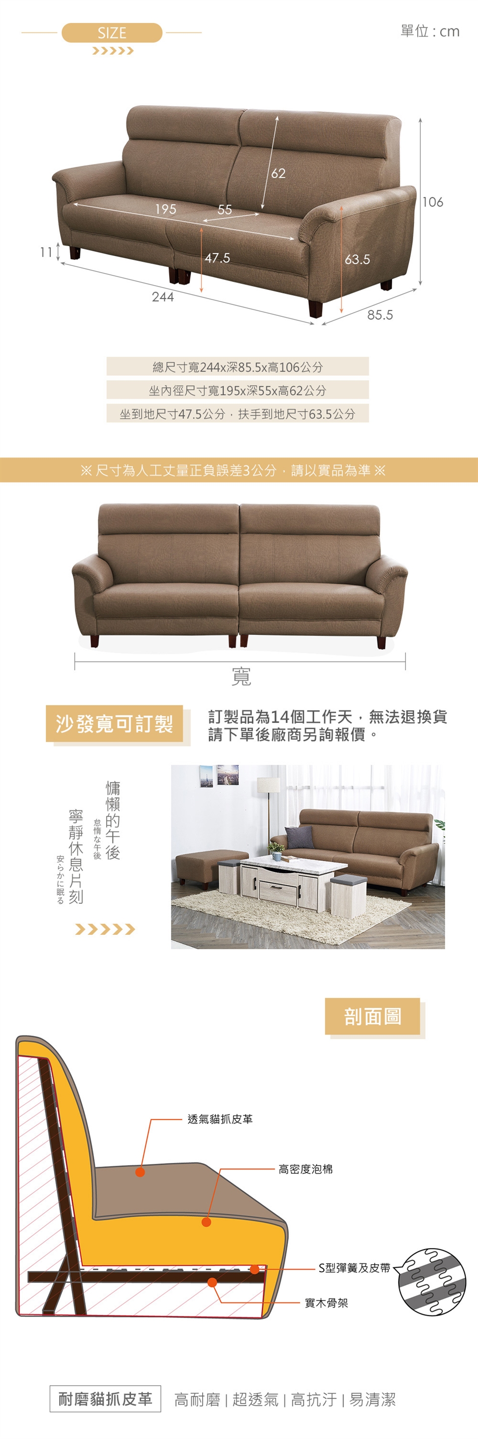 (如圖,網頁產品因電腦螢幕設定差異及拍攝關係請以實品顏色為準。 不含情境圖內之擺設飾品,尺寸標示皆有正負3%差)